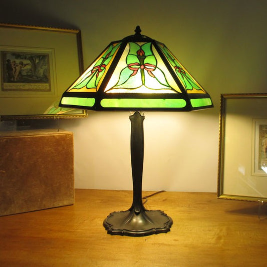 Bradley & Hubbard Lamp Base with Stained Slag Glass Shade