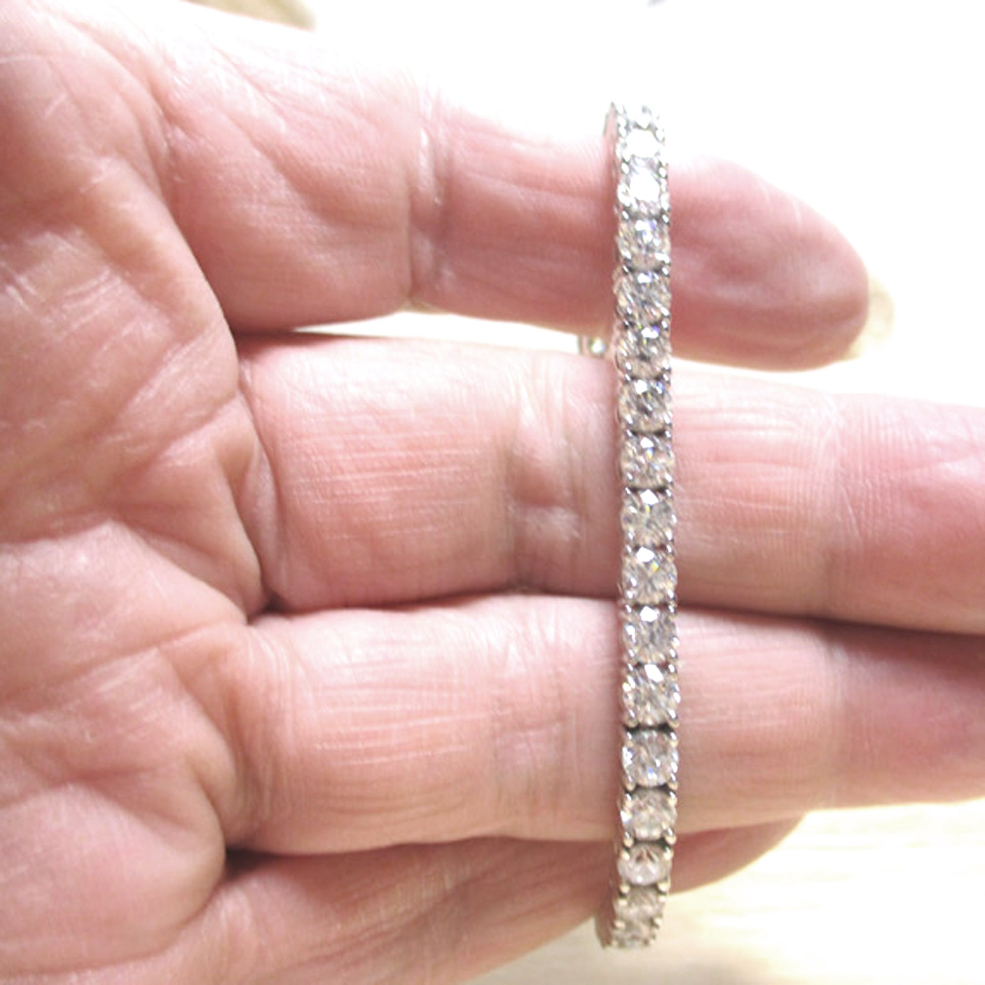 Excellent condition sterling silver and cubic zirconia tennis bracelet in a 7 1/2" length. This is very well made, and the stones have a lot of sparkle to them. This is a classic and timeless design to add a bit of elegance to an outfit.